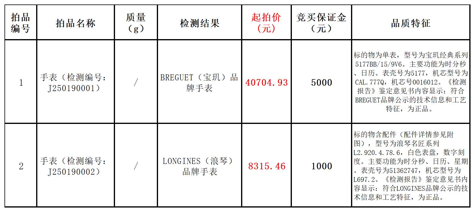 受委托,我公司定于2025年8月27日公開拍賣:2塊手表(浪琴牌、寶璣牌)。