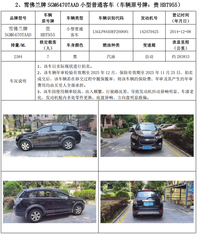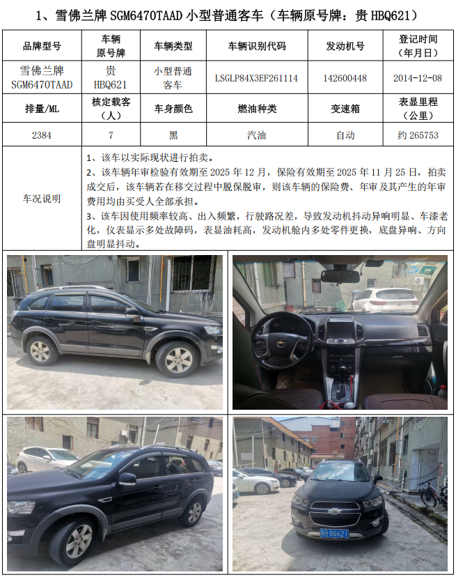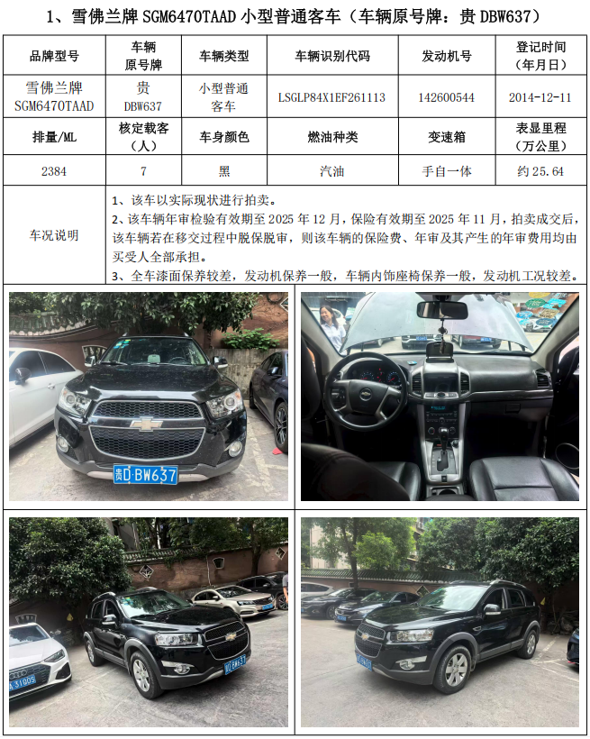 1、雪佛蘭牌SGM6470TAAD小型普通客車2輛,整體拍賣,起拍價(jià):14100元,競買保證金:5000元;