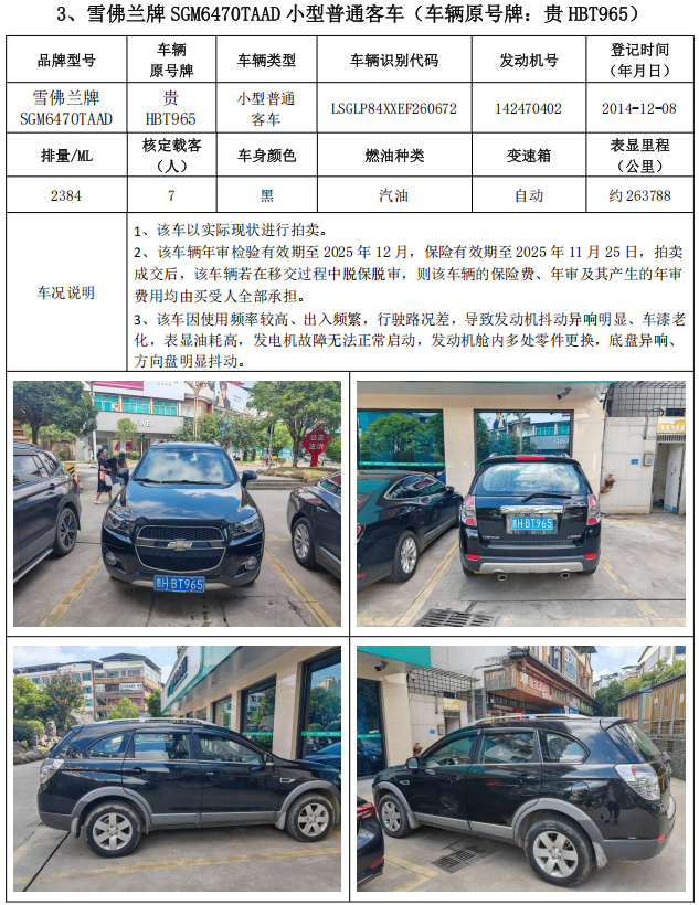 拍品編號(hào)2:雪佛蘭牌SGM6470TAAD小型普通客車3輛,整體拍賣