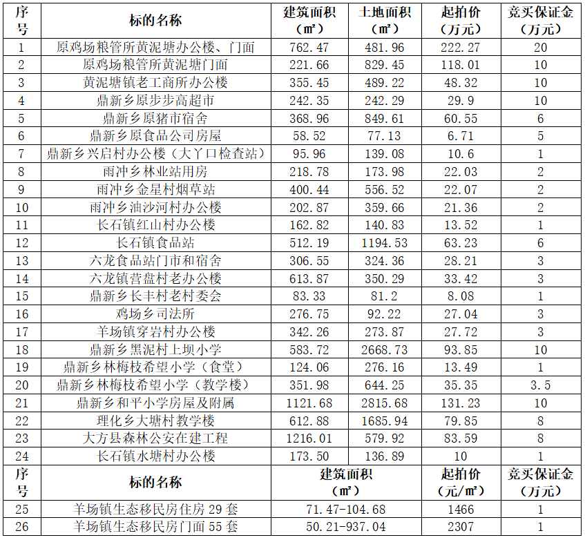 【11月14日】大方黃泥塘鎮(zhèn)、鼎新鄉(xiāng)、雨沖鄉(xiāng)、長(zhǎng)石鎮(zhèn)、六龍鎮(zhèn)、雞場(chǎng)鄉(xiāng)、理化鄉(xiāng)、羊場(chǎng)鎮(zhèn)、大海壩房地產(chǎn)拍賣(mài)公告