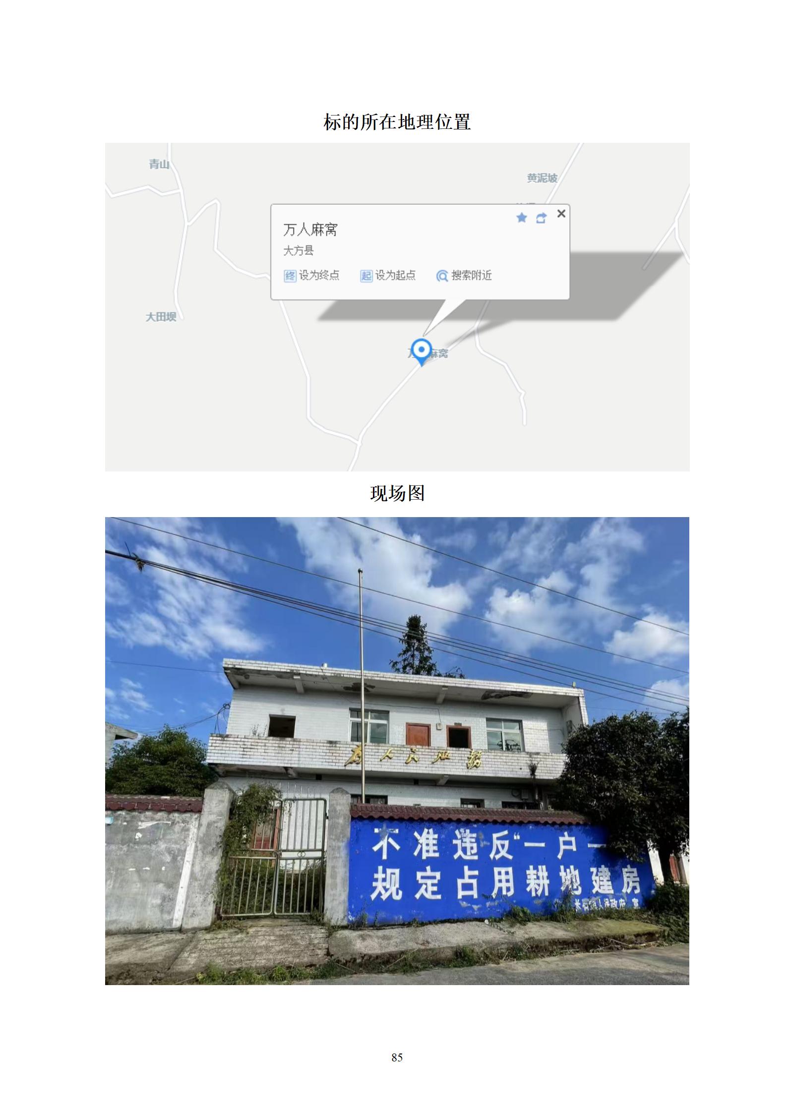標(biāo)的位于大方縣雨沖鄉(xiāng)油沙村。建筑面積:202.87㎡,土地面積:359.66㎡,建筑結(jié)構(gòu)為混合結(jié)構(gòu),總層數(shù)為2層,土地性質(zhì)為劃撥。