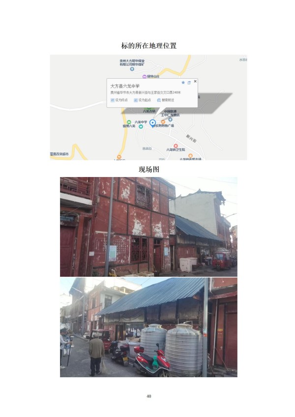 標(biāo)的位于大海壩。建筑面積:1216.01㎡,土地面積:579.92㎡,建筑結(jié)構(gòu)為混合結(jié)構(gòu),總層數(shù)為3層,土地性質(zhì)為劃撥。